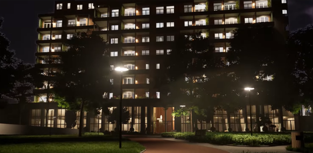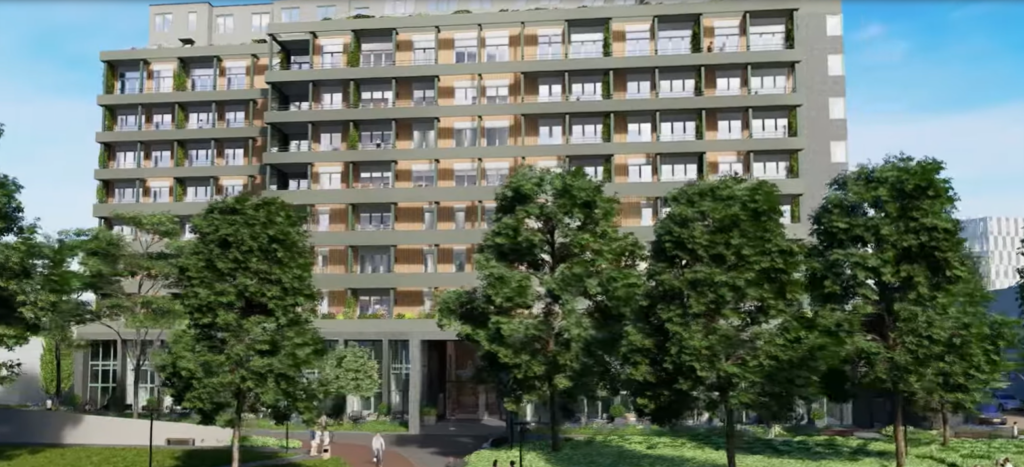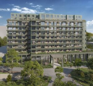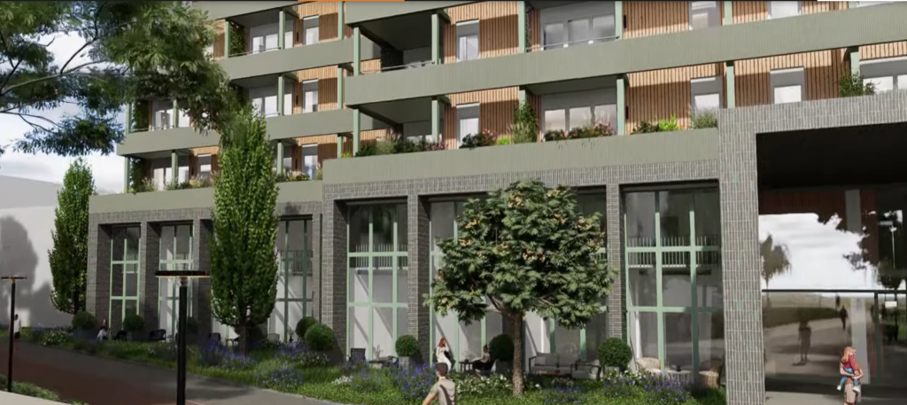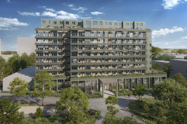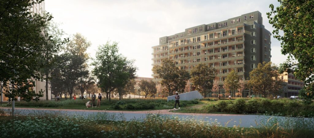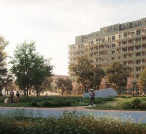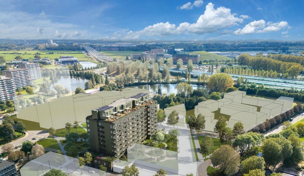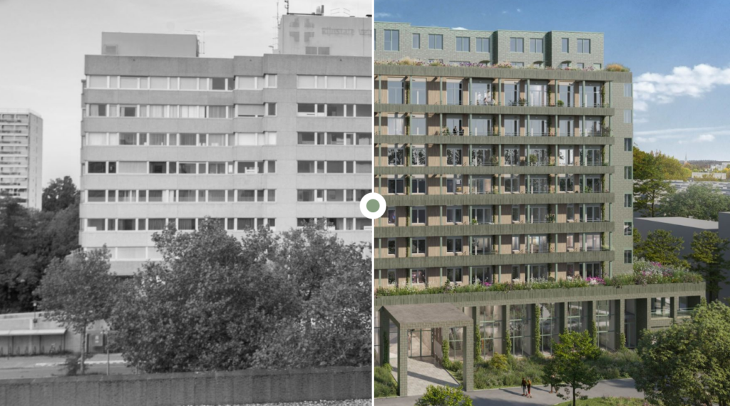 Start van deze gebiedsontwikkeling is de transformatie van het ziekenhuis tot woongebouw met 138 huur- en koopwoningen. Het iconische ziekenhuis uit de jaren zestig is behouden omdat het een duidelijk herkenningspunt is voor de stad. Maar het is natuurlijk ook duurzaam om dit grote, bestaande gebouw nieuw leven in te blazen.